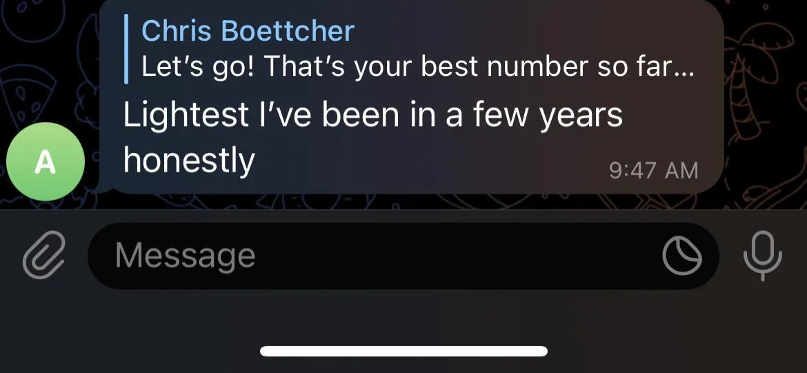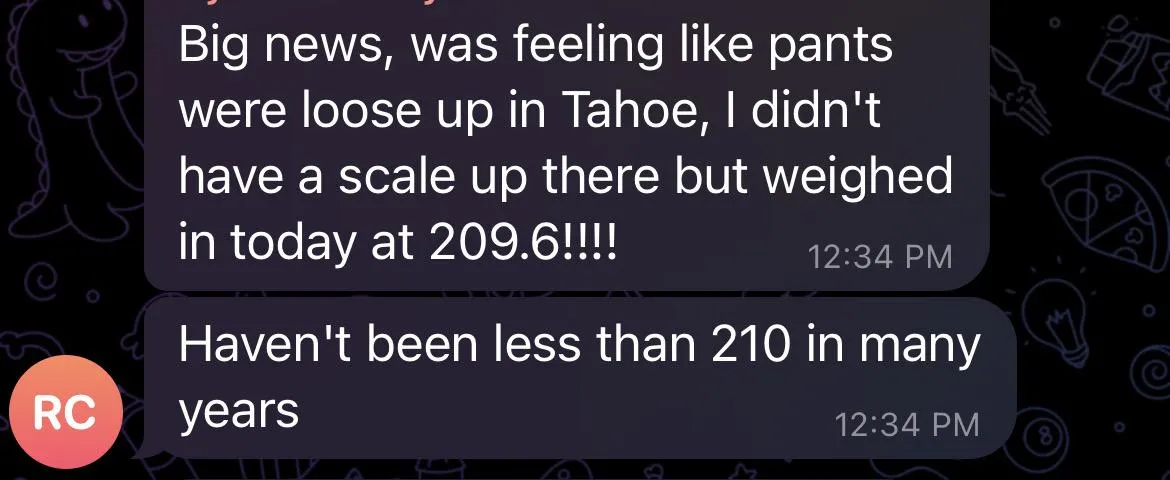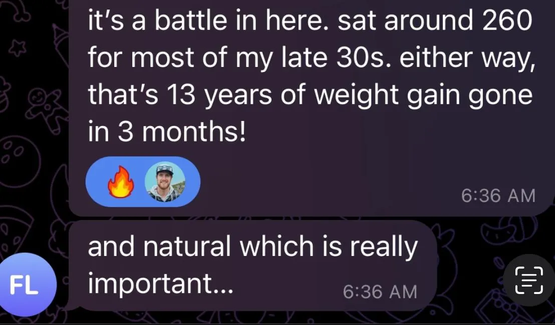 What I learned around nutrition specifically has truly changed my life... I was burning out, full of anxiety and constantly fluctuating with my weight as you know... and I was addicted to the "foods" that it turns out were causing the majority of those issues. I again want to thank you and Brett for providing me with the direction and intel I needed to rise from the rut I was running in."