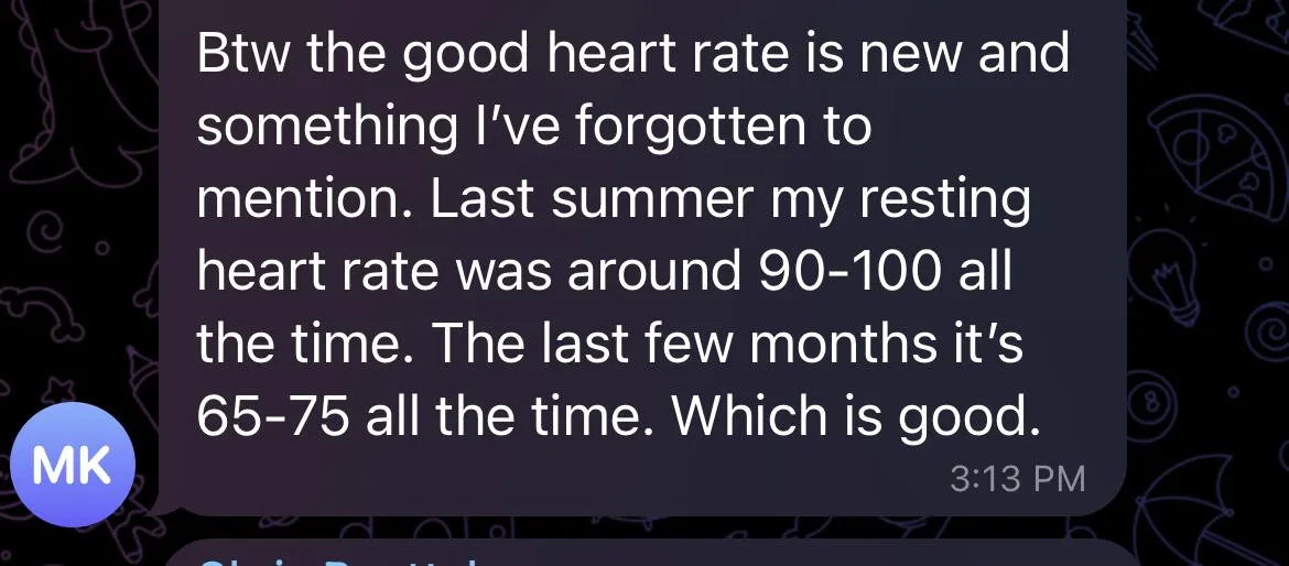 Resting heart rate dropped 13 beats taking serious stress off his heart