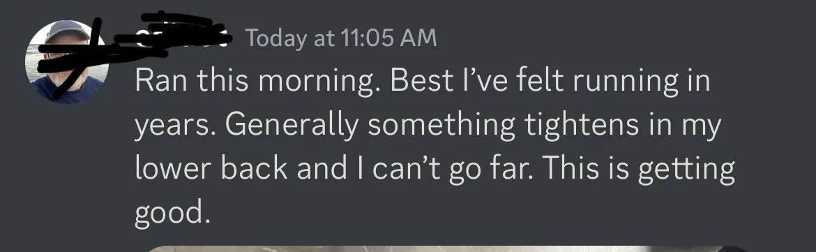 Went from struggling to walk without pain to moving freely and pain-reduced.