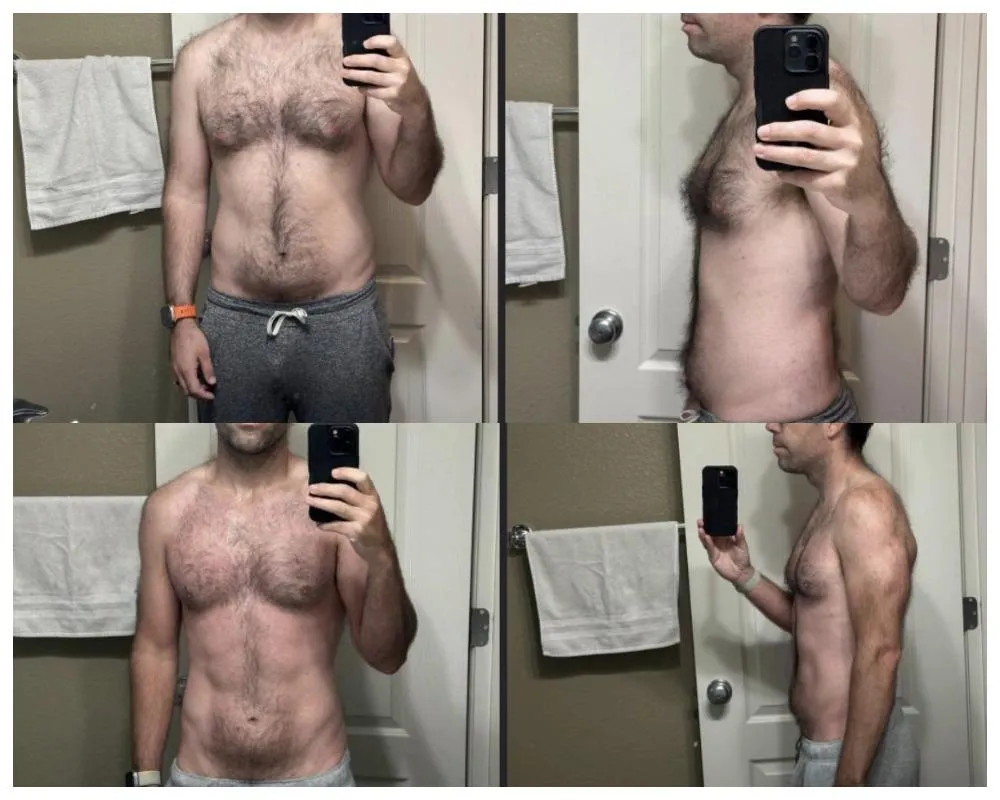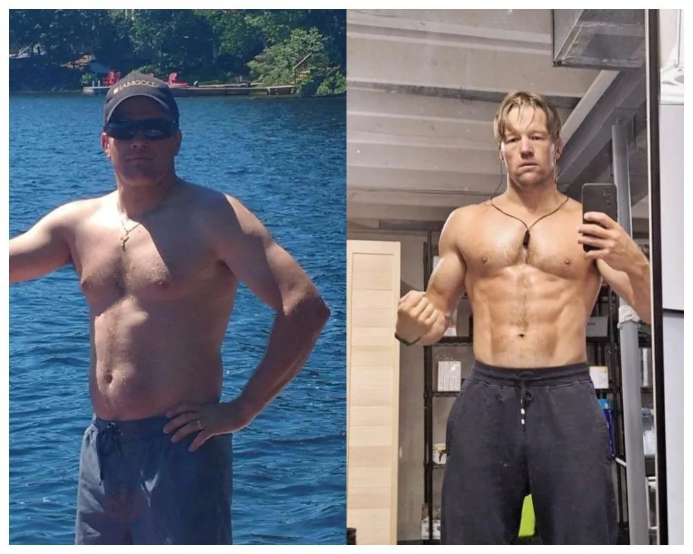 Kyle on the left - strict keto, counting calorie...burned out, low energy, and stuck.